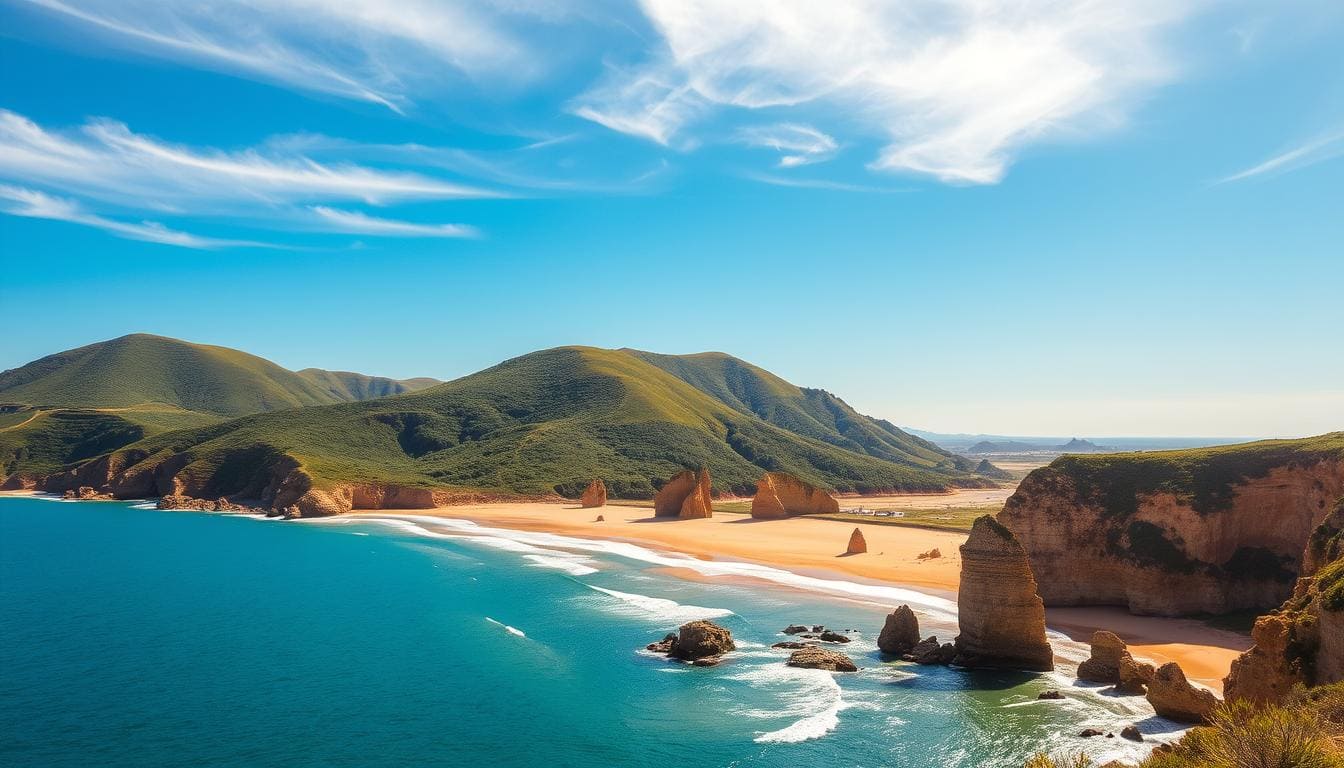 Die südliche Küste Portugals ist ein wahres Paradies für Naturliebhaber und Urlauber. Mit einer Mischung aus goldenen Sandflächen, versteckten Buchten und beeindruckenden Felsformationen bietet diese Region ein unvergessliches Erlebnis. Das Meer glitzert in türkisfarbenen Tönen und lädt zum Schwimmen, Schnorcheln oder einfach nur zum Entspannen ein.
